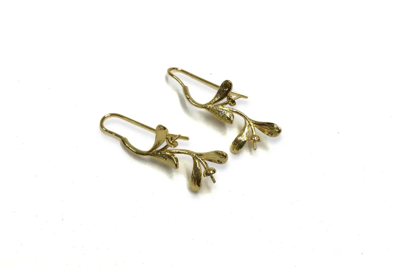Bases para pendientes en latón con baño dorado. Con base para pegar piedras. Pequeños cristales.